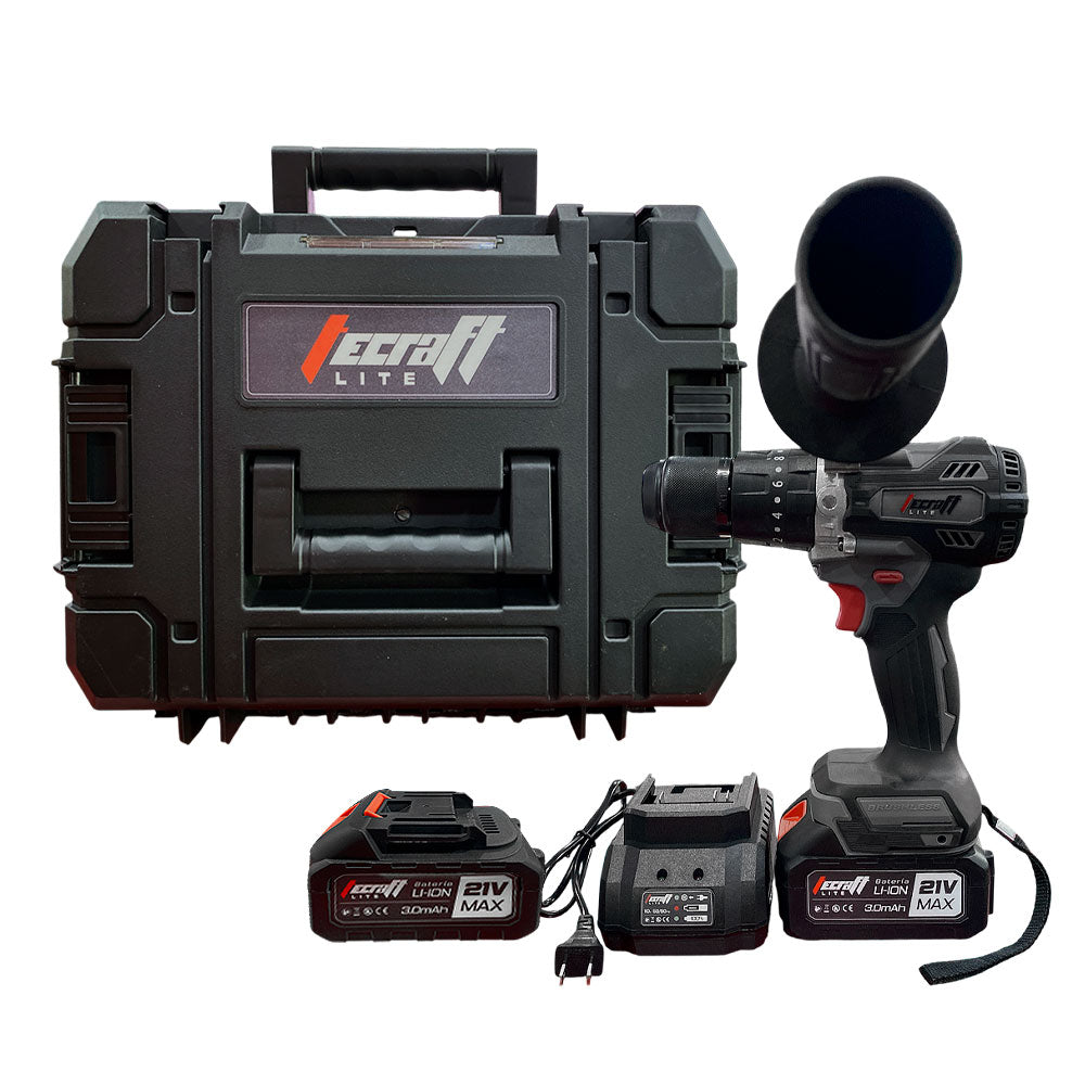 Taladro inalámbrico 900W de 21V sin escobillas marca Tecraft Industry.