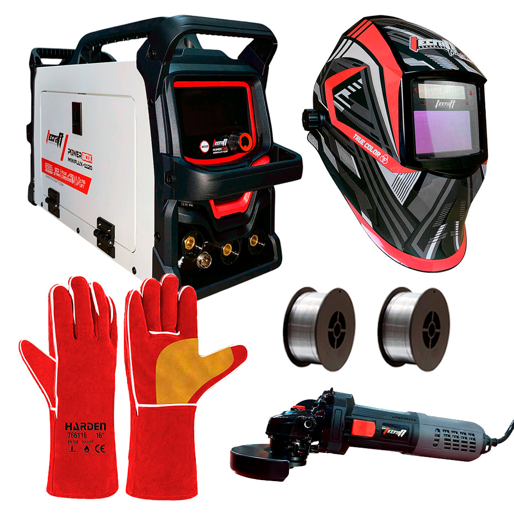 El soldador inversor POWERBOX-MINI-FLUX1120 está diseñado para trabajos profesionales, es un equipo de excelente rendimiento con potencia para soldar electrodos 6011, 6013, 6014, 7018 e inoxidable en grosores de hasta 1/8" (2.4mm) de espesor. Ideal para trabajos en proceso MIG únicamente con alambre FLUX CORED tanto en metal como inoxidable de 0,030 (0,8mm), 0,035 (0,9 mm) y 0,040 (1,0 mm).