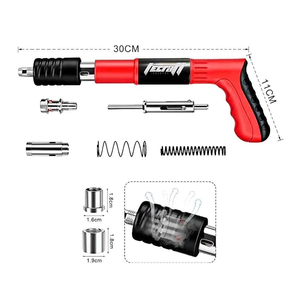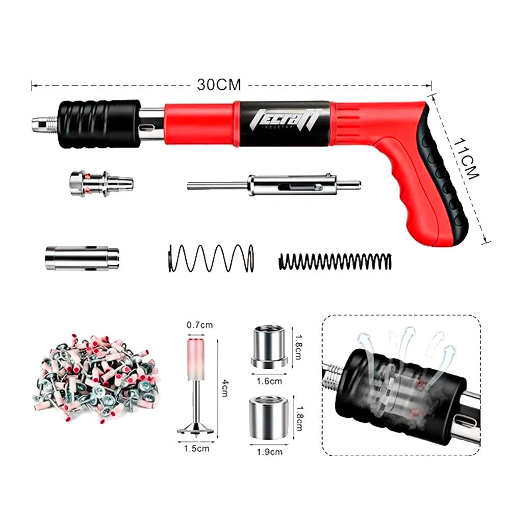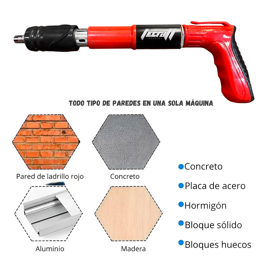 La pistola de fijación tiro a tiro cuanta con un mango ergonómico, cuerpo interno en metal resistente y duradero, barril a prueba de explosiones, seguro y duradero, utiliza resorte de grado industrial con tratamiento térmico de alta temperatura, lo que hace que la estructura del resorte sea más sólida y más duradera que los resortes normales.